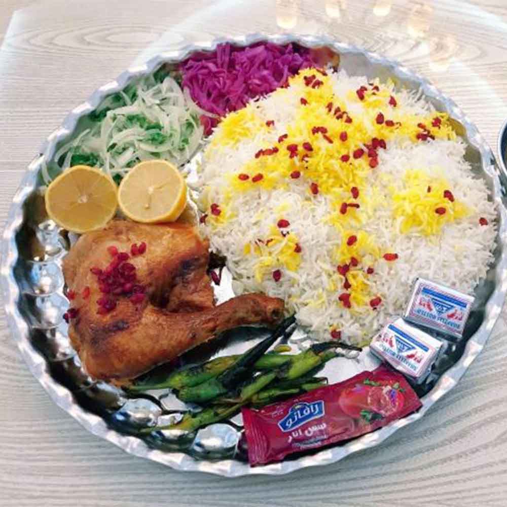 200 گرم لقمه زعفرانی 220 گرم فیله گوساله 250 گرم جوجه زعفرانی 350 گرم برنج ایرانی