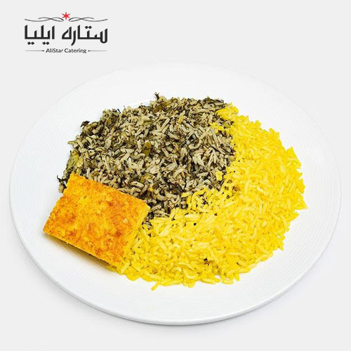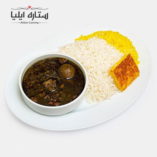 170 گرم خورشت قرمه سبزی به همراه 300 گرم برنج خارجی