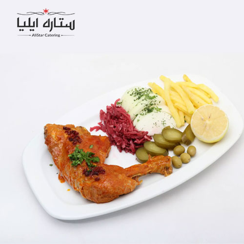 ران مرغ تازه 300 گرمی به همراه دورچین و سیب زمینی سرخ شده (آماده سازی تمامی غذاهای شرکتی 4 ساعت به طول می انجامد)