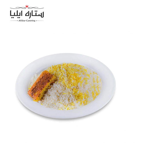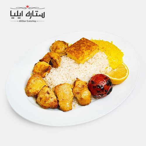 یک سیخ 120 گرمی جوجه کباب سینه مرغ زعفرانی به همراه 300 گرم برنج ایرانی (آماده سازی تمامی غذاهای شرکتی 4 ساعت به طول می انجامد)