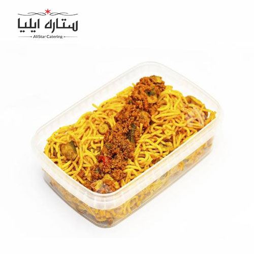 350 گرم مارکارونی صاف اسپاگیتی به همراه گوشت مخلوط گوسفندی و گوساله و ته دیگ سیب زمینی (آماده سازی تمامی غذاهای شرکتی 4 ساعت زمان بر خواهد بود)
