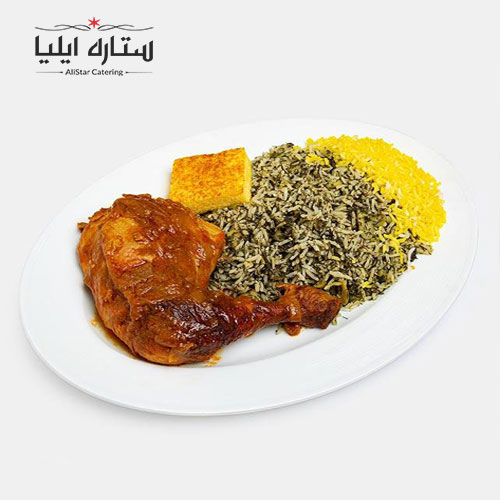 300 گرم باقالی پلو با برنج ایرانی به همراه ران مرغ تازه 350 گرمی (آماده سازی تمامی غذاهای شرکتی 4 ساعت به طول می انجامد)