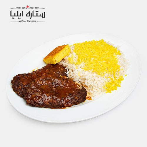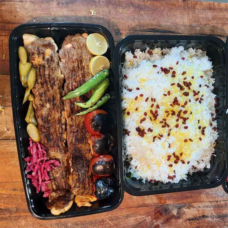 200 گرم کباب تابه ای با کوشت مخلوط به همراه 300 گرم برنج ایرانی (آماده سازی تمامی غذاهای شرکتی 4 ساعت به طول می انجامد)